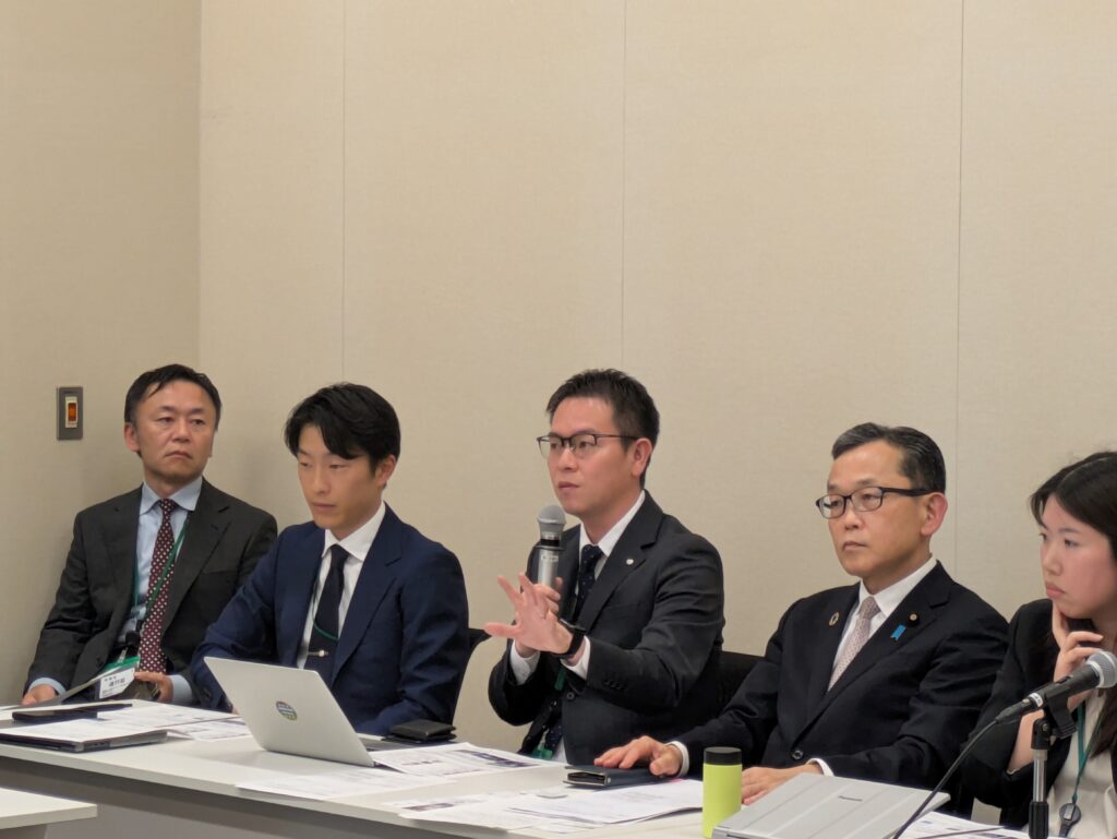 日本の国会を代表し参加した、公明党の竹内真二参議院議員は、毎年参議院が日本の国会を代表して2名をCOPに派遣しており、今回はその枠として現地参加した経験を共有しました。現地で開催された世界議員会議(IPU)に出席し、ジェンダーや地球温暖化への適応策など4つのテーマで議論した内容を報告しました。特に、先住民や女性の参画について重要度が今まで以上に増している点や、例えば二国間クレジット制度(JCM)の活用などでは、各国からポジティブなコメントも聞かれ、具体的な取り組みで日本が評価されている点にふれ、米国がCOPを欠席するなど国際協調が危ぶまれる中、合意文書をまとめることができた意義が大きいことを強調しました。