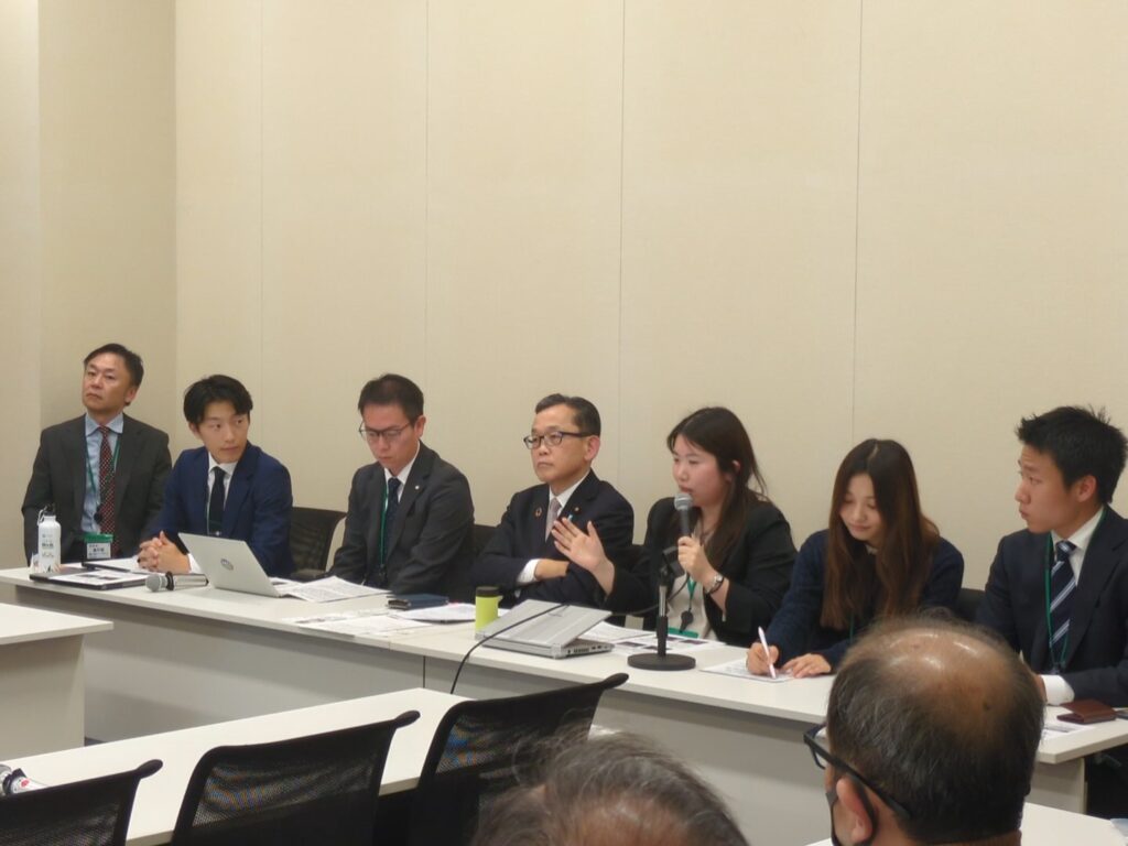 また、本報告会には、立憲民主党の山崎誠衆議院議員 、小川淳也衆議院議員にもご参加いただき、途中コメントを頂戴しました。立憲民主党環境・エネルギー総合調査会事務局長を務める山崎議員からは「報告をしっかり受け止め、化石燃料や森林破壊の課題・対策等について、環境分野の主流にしていきたい。」、小川議員からは「気候変動対策はもとより、いずれ日本をエネルギーの輸出国にしたい。そういう思いで取り組みたい」とご発言をいただきました。その他、数名の議員秘書にも参加いただきました。