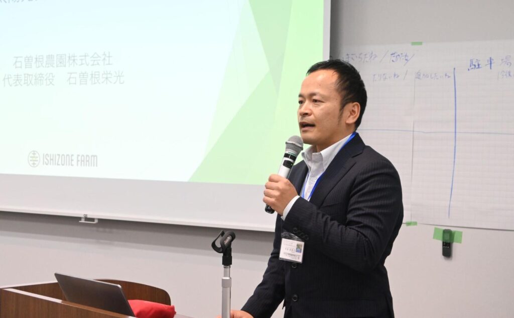 写真:農家目線からAPVの参入障壁について述べる石曽根農園株式会社の石曽根氏