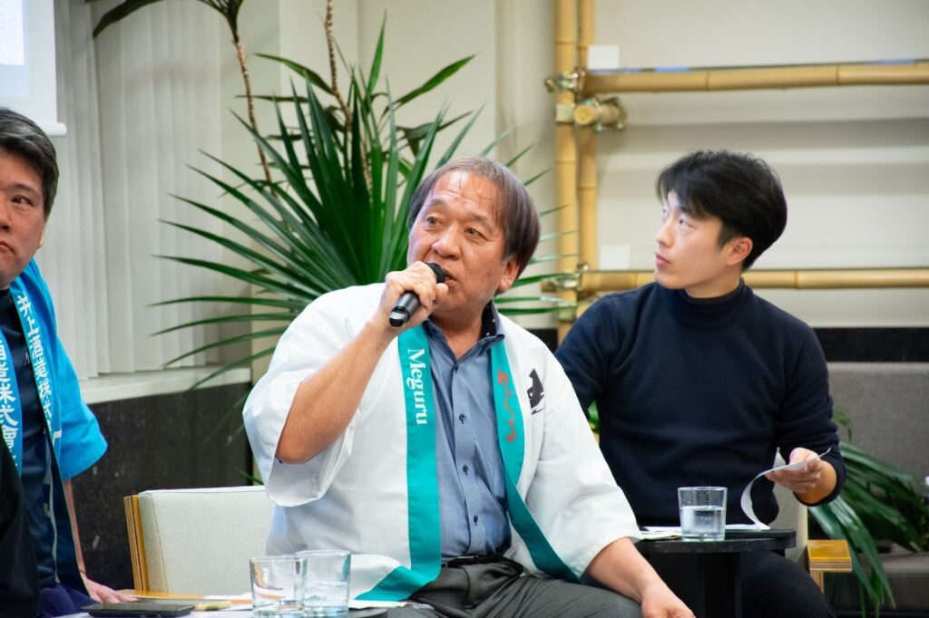 辻氏は「若手の間では、精米歩合(玄米を削ったあと、残ったお米の割合)によって日本酒の価値が決められる今の制度が果たして良いのか、という議論もある。これからの日本酒の新しい価値を、お客様と一緒に共有できるものを考えていきたい。」と述べました。